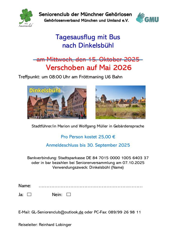VERSCHOBEN auf MAI 2026: Seniorenclub / Tagesausflug mit Bus nach Dinkelbühl