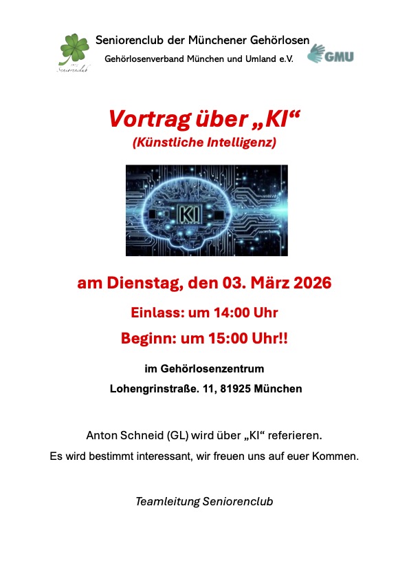 Seniorenclub / Vortrag über KI am 03. März 2026
